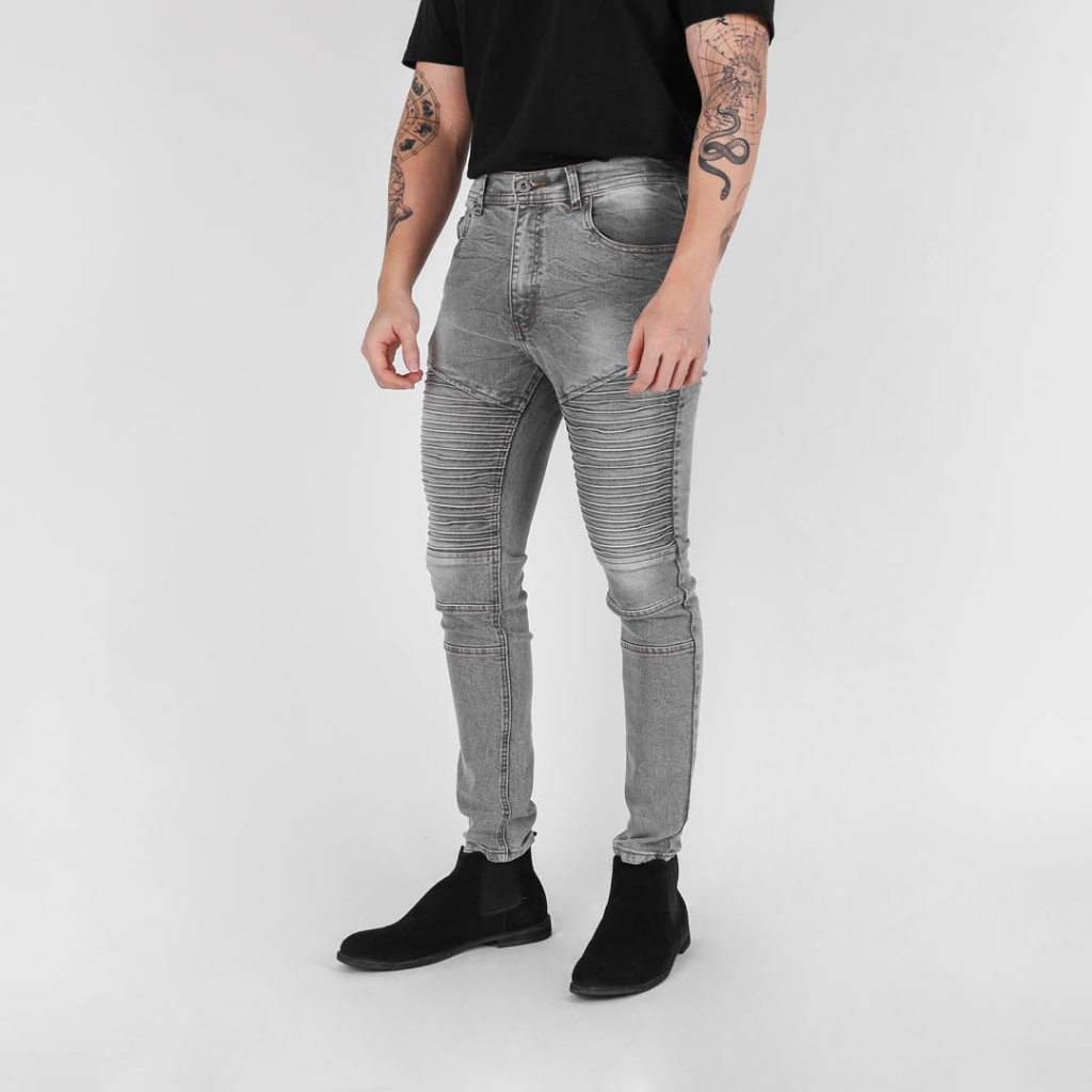 UNITEDJEANS - Celana Jeans Pria Bahan Soft Stretch Denim - Biker Jeans - Snow Grey - (UJB-12)