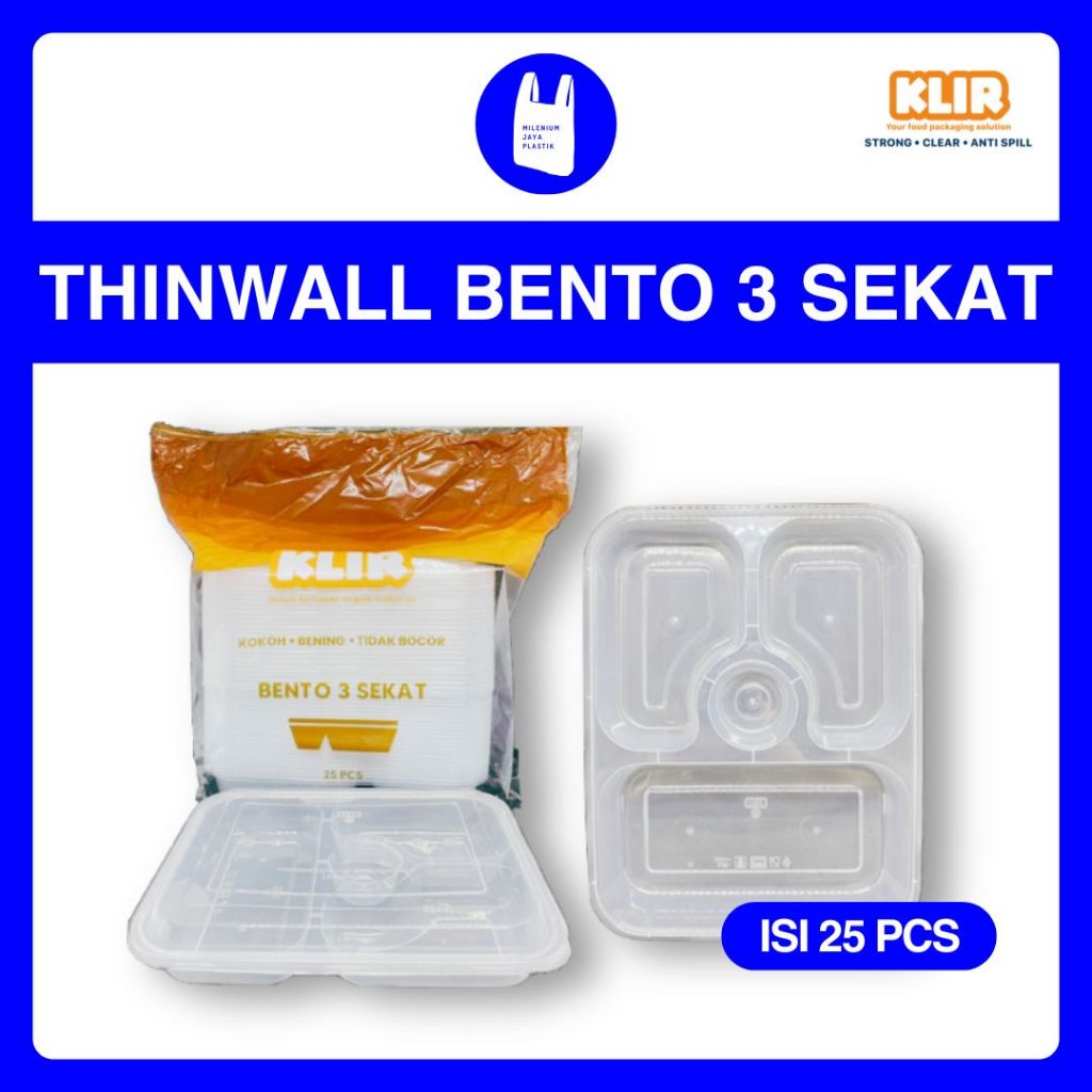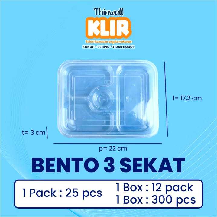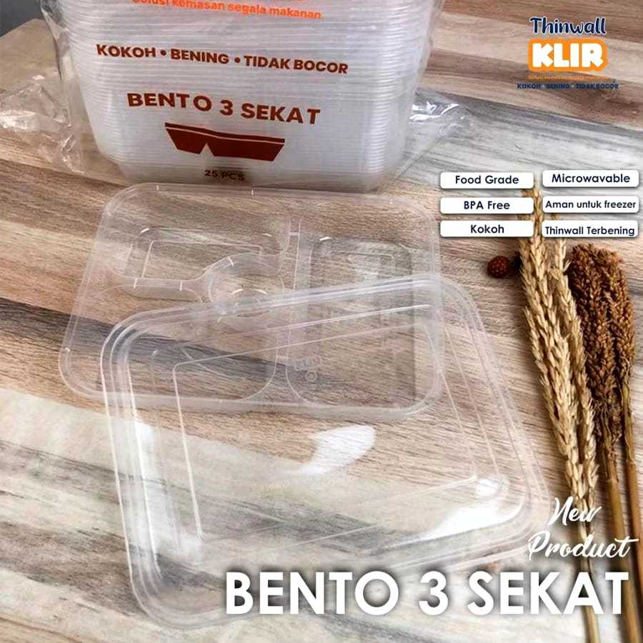 [25 PCS] Thinwall Bento 3 Sekat | Kotak Makan Plastik 3 Sekat