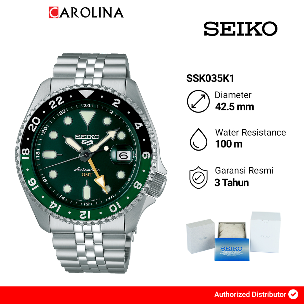 Jam Tangan Pria Seiko 5 Sports SSK035K1 SKX Series Automatic GMT Sprite Green Black Dial Stainless Steel Strap