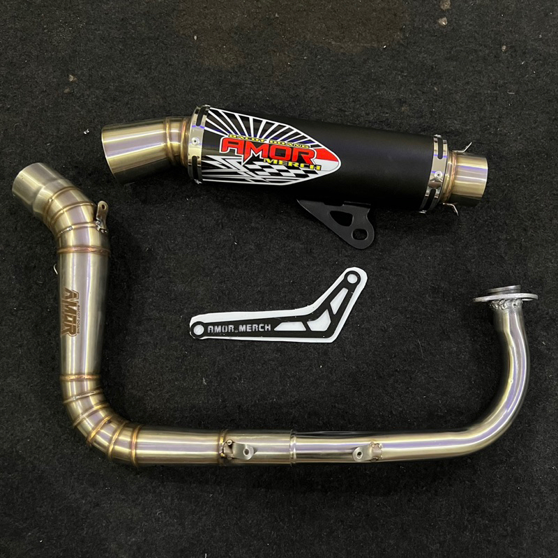 ( Grade B Black inlet 50 45 38 free breket tiang ) Knalpot samlong amor merch kobra untuk matic beat vario mio nmax aerox