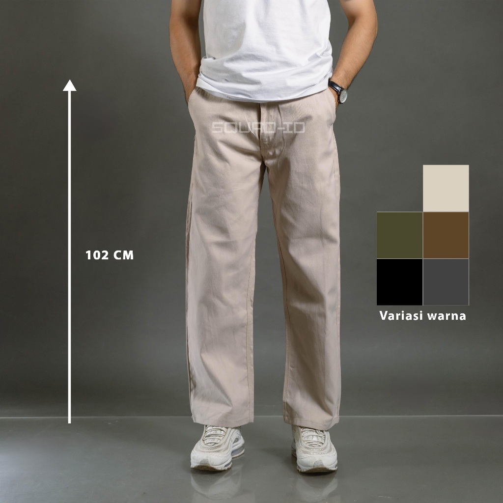 SQ SQUAD ID Celana Chino Panjang Pria Straight Fit Reguler - Loose Baggy Kombor Standar Lurus