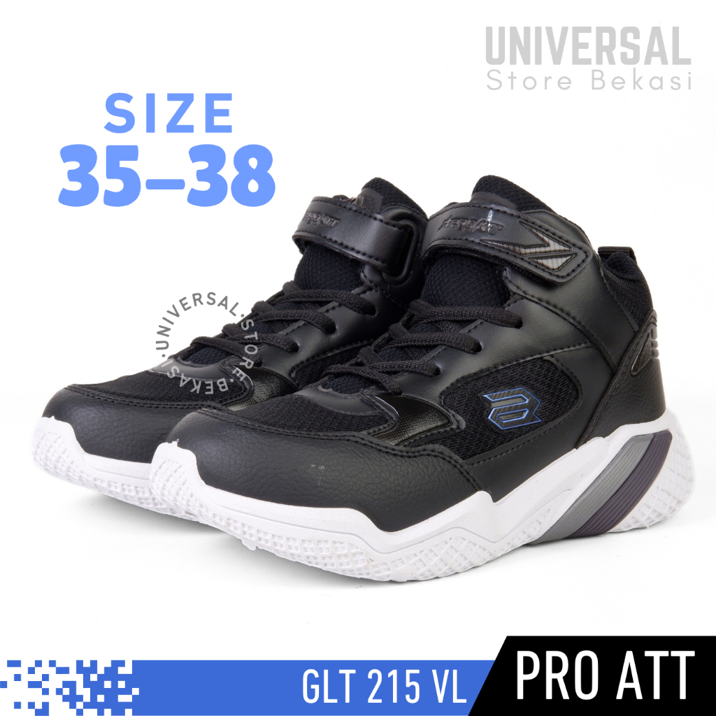 Sepatu Sekolah Anak Laki Laki Perempuan PRO ATT Tali Perekat Velcro Kreket SD SMP Kelas 1 2 3 4 5 6 Spatu Skolah Hitam Putih Polos Cewe Cowo GLT 215 VL
