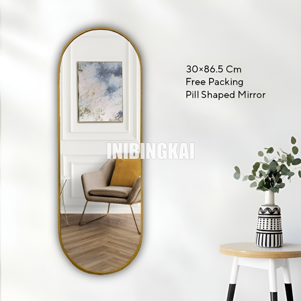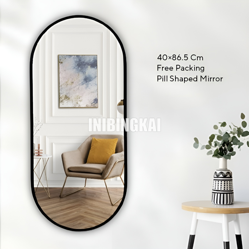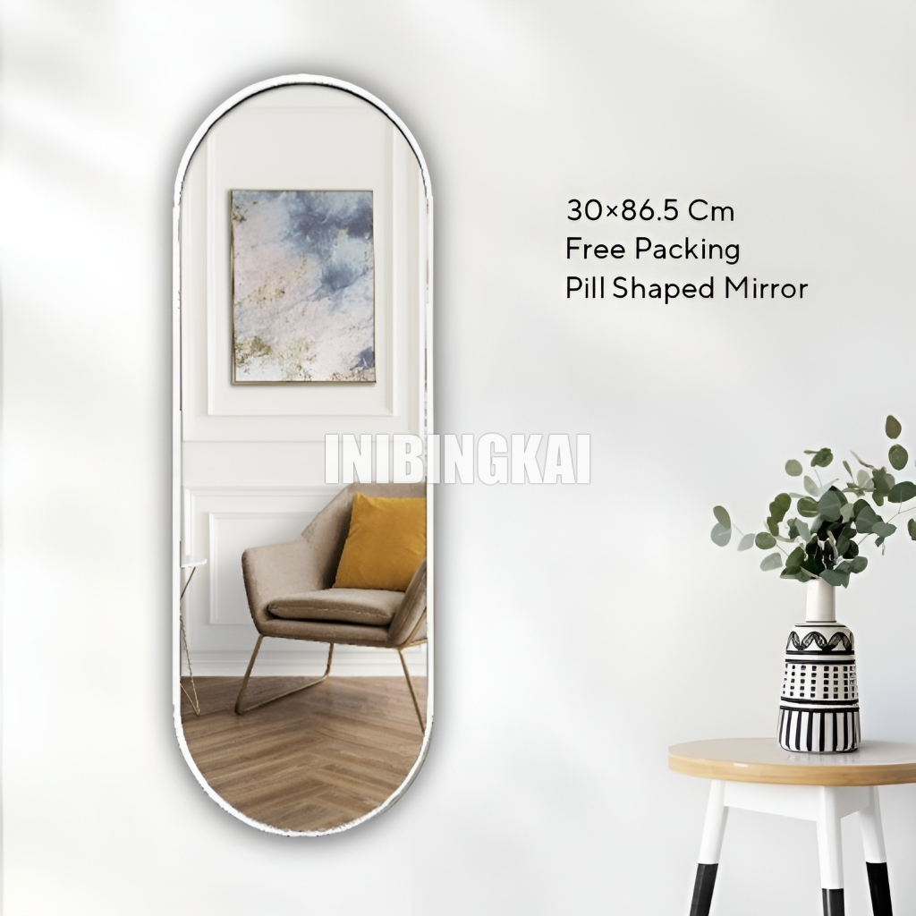 Cermin Dinding Kapsul Oval Aesthetic Cocok untuk Dekorasi Rumah & Kamar Minimalis | Pill Shaped Mirror by Inibingkai