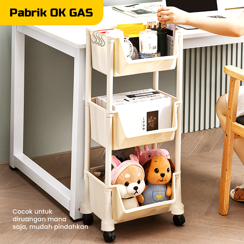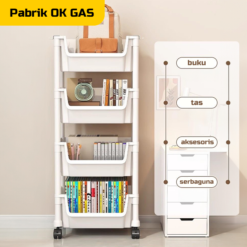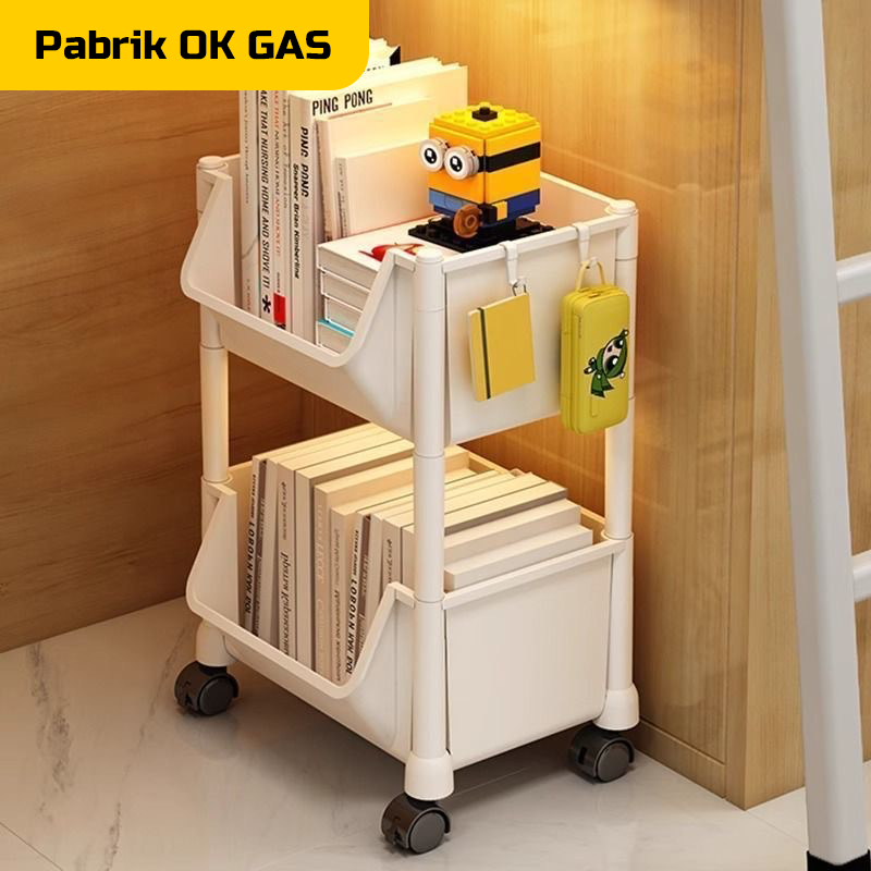 Rak Susun 3-5 Tingkat Serbaguna Dengan Roda Portable untuk Buku dan Mainan