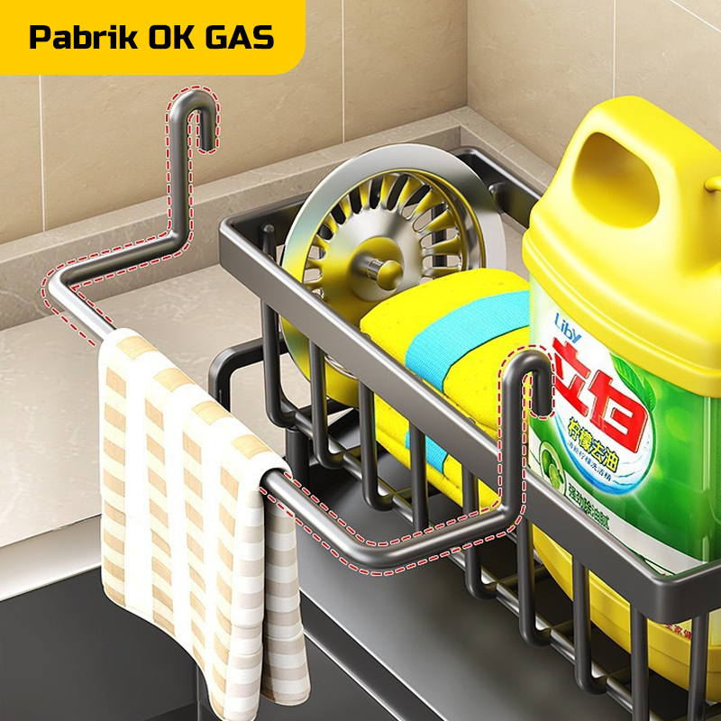 POG - Rak Spons Sabun Cuci Piring Rak Wastafel Plastik Multifungsi Tempat Pengering Spons dengan Holder Kain