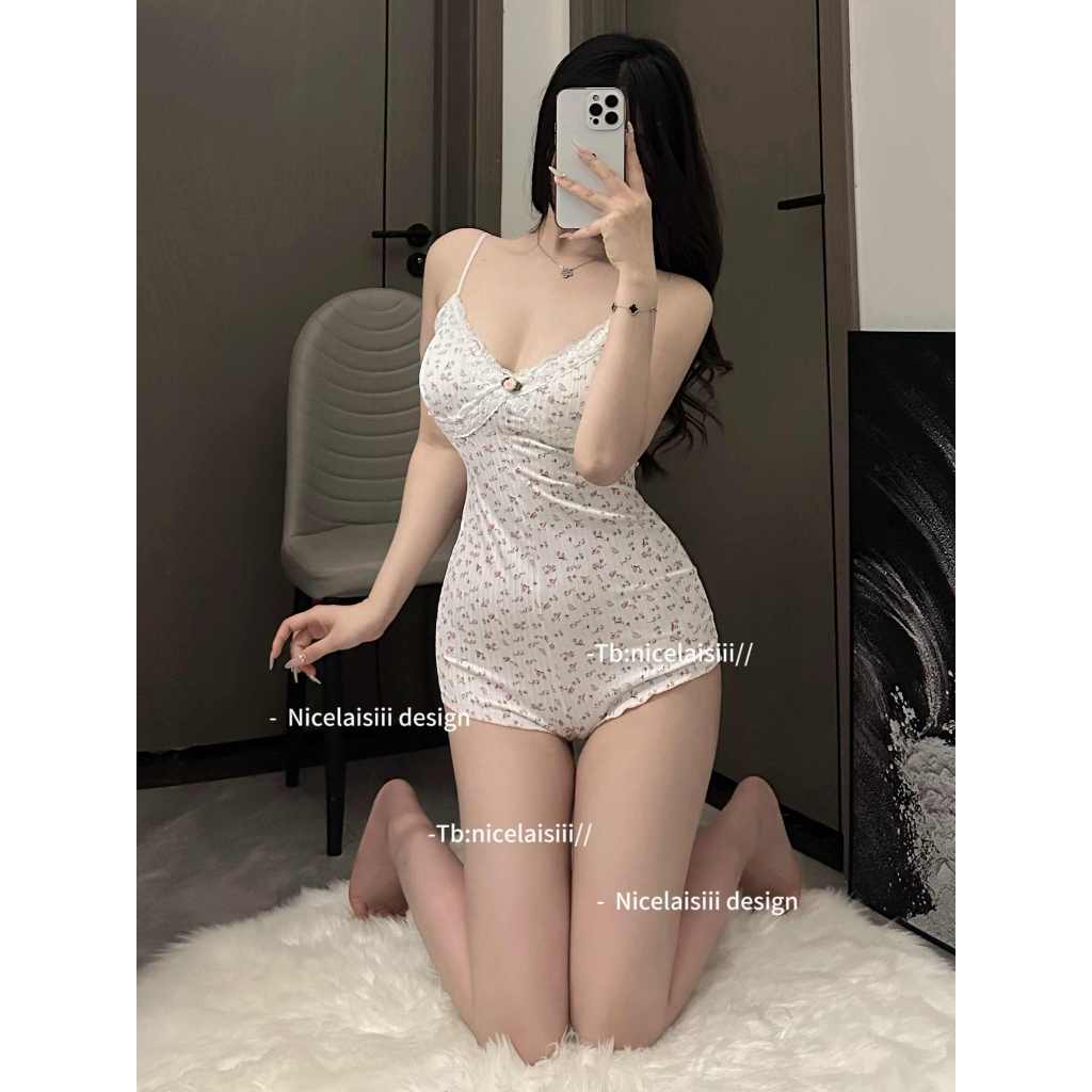 Baju Tidur Bodysuit Wanita BS-2385 Gaya Manis Panas V Neck Bunga Sling y Hot Baju Rumah Mimon Home