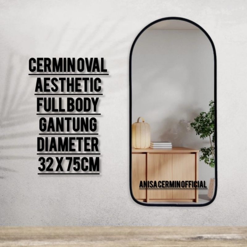 Cermin Oval Aesthetic Gantung Anti Rayap 32x75cm