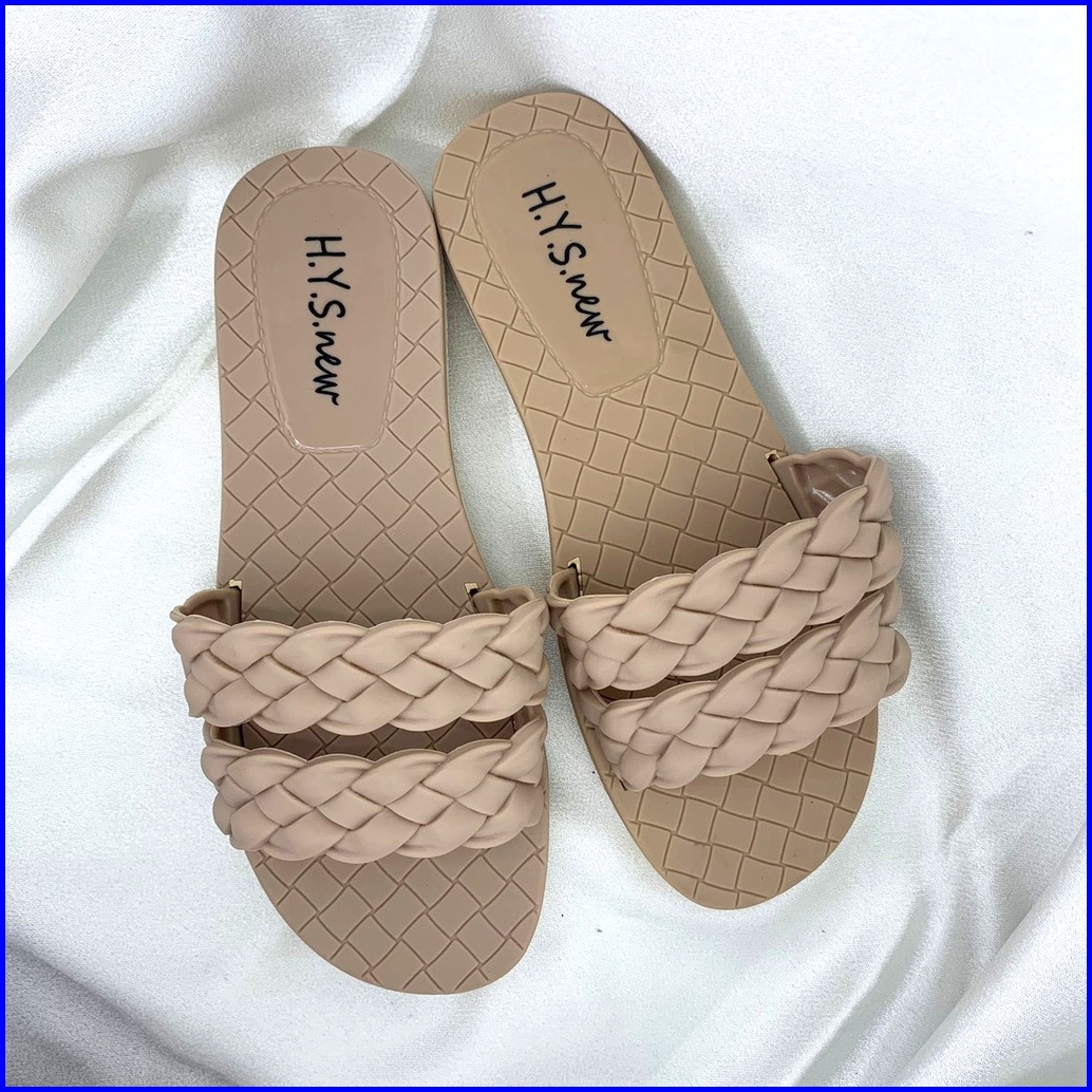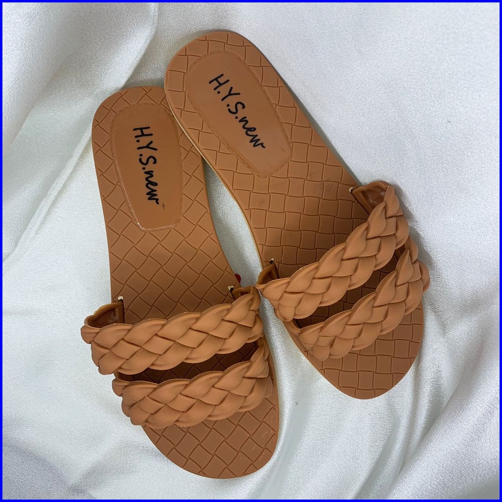 Sandal Wanita Terbaru 2022 Sendal Selop Anyam Jelly Hys New 2123 Teplek Karet Import