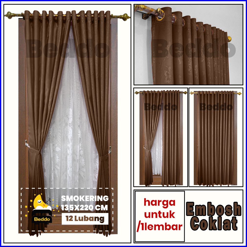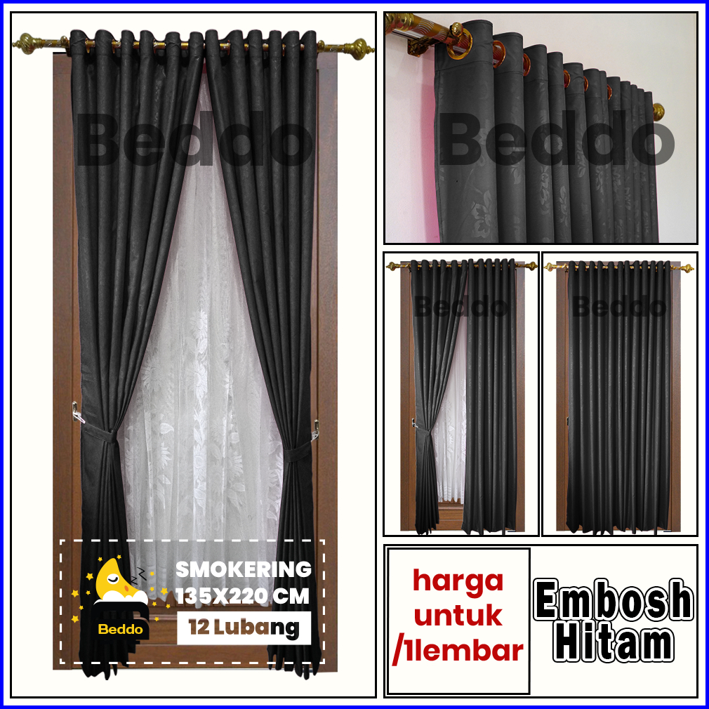 Tirai Pintu Dan Gorden Jendela Polos Embos Smokering 12 Lubang Korden Grey Maroon Navy White Army