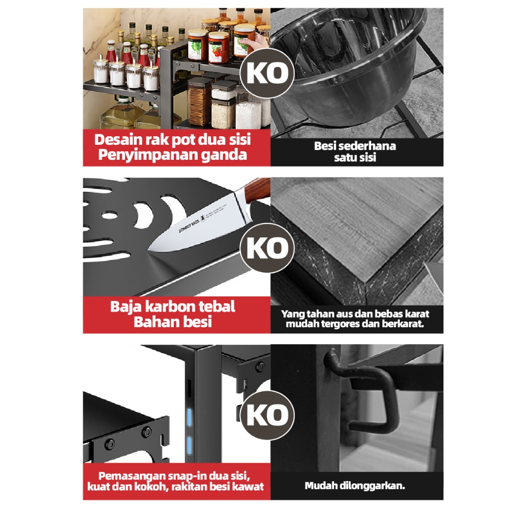 E-TIFE Rak Pot Rak Panci Susun Rak Bawah Wastafel Rak Dapur Stainless Steel (3/4/5 Tingkat)