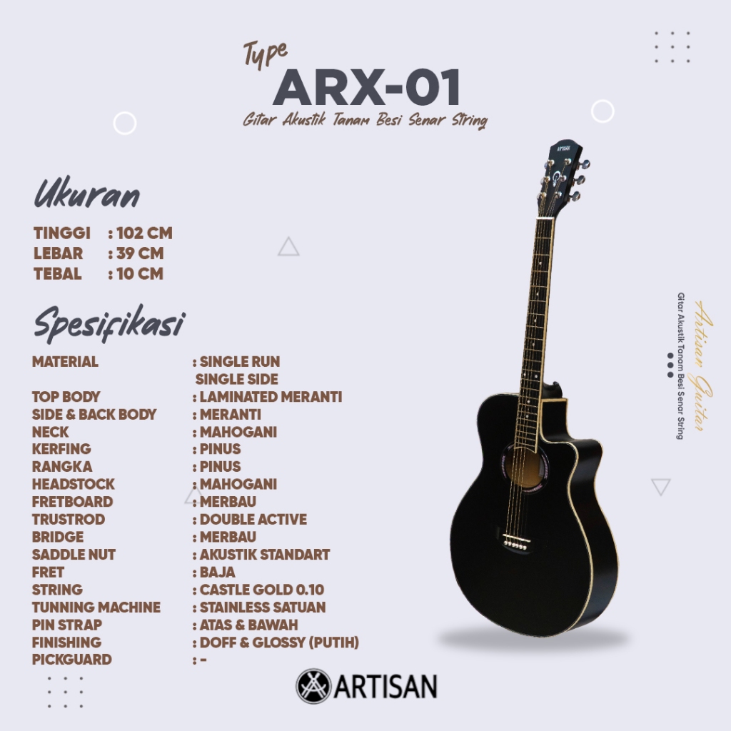 ARTISAN Gitar Akustik Tanam Besi ARX - 01 Senar String Guitar