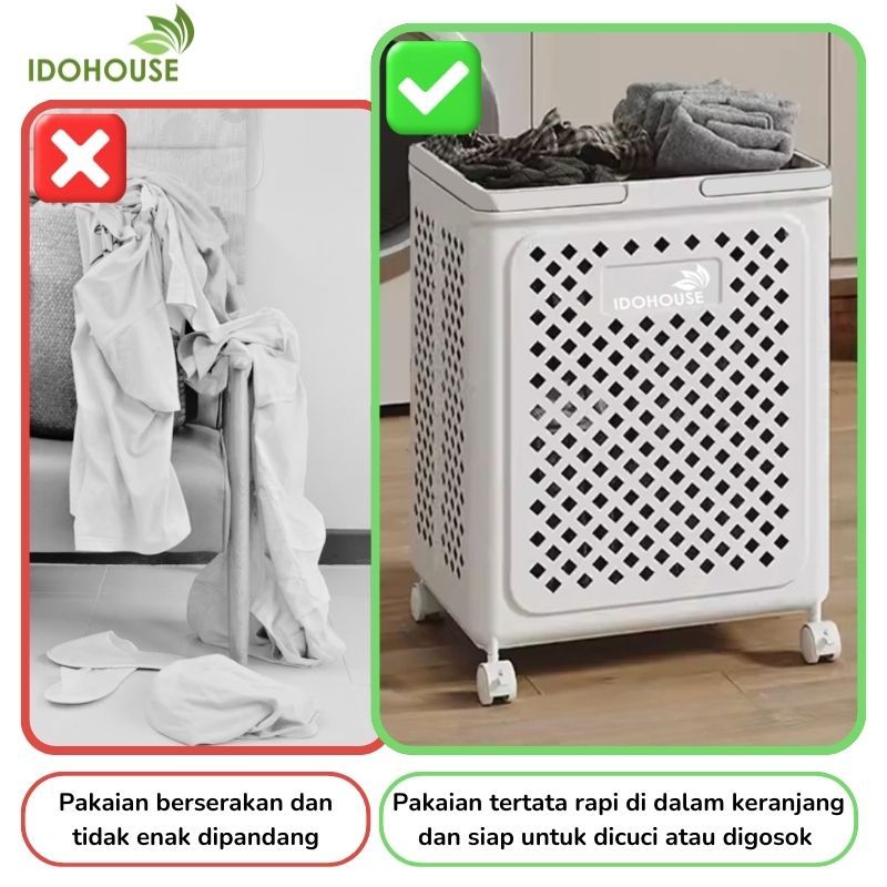 IDOHOUSE Laundry Basket Keranjang Lipat Serbaguna Tempat Baju Pakaian Kotor Dengan Roda - D01A/D01B