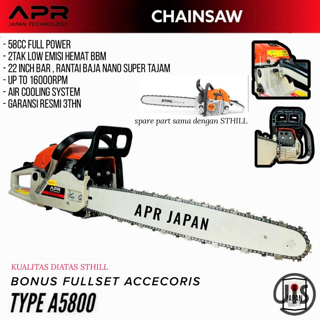 RESMI CHAINSAW APR JAPAN 5800 22INCH CHAINSAW 2TAK MESIN SENSO FALSH 1 HARI
