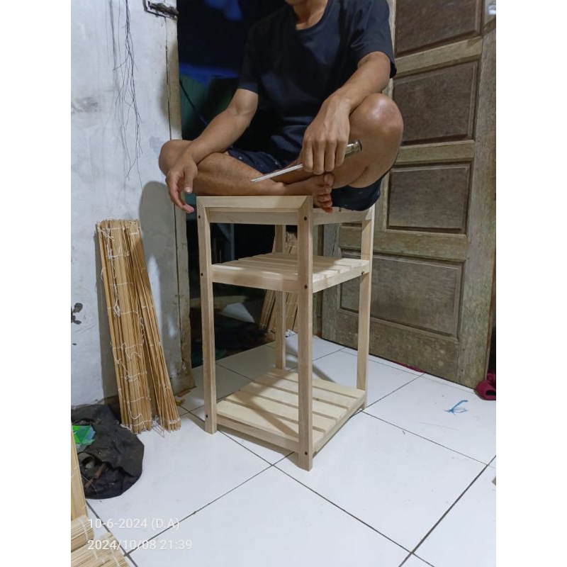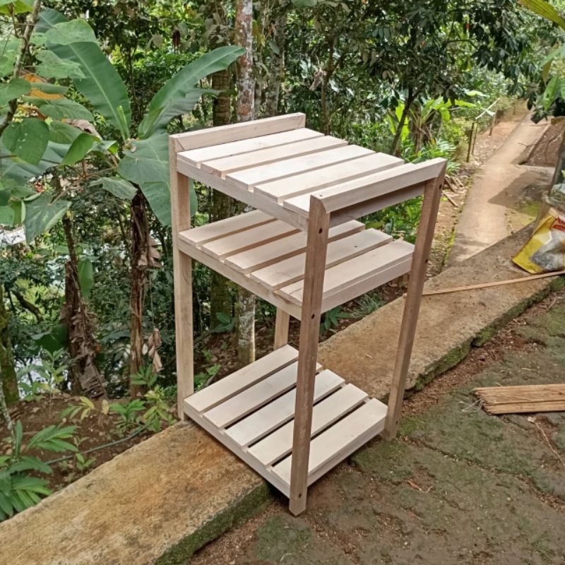 Terbaru.. Rak kayu 3 susun serbaguna rak galon rak dispenser rak rice cooker