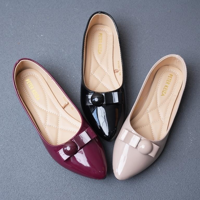 Peter Keiza Flat Shoes Wanita Glossy dengan Hiasan Simple Korean Style PAS28-1