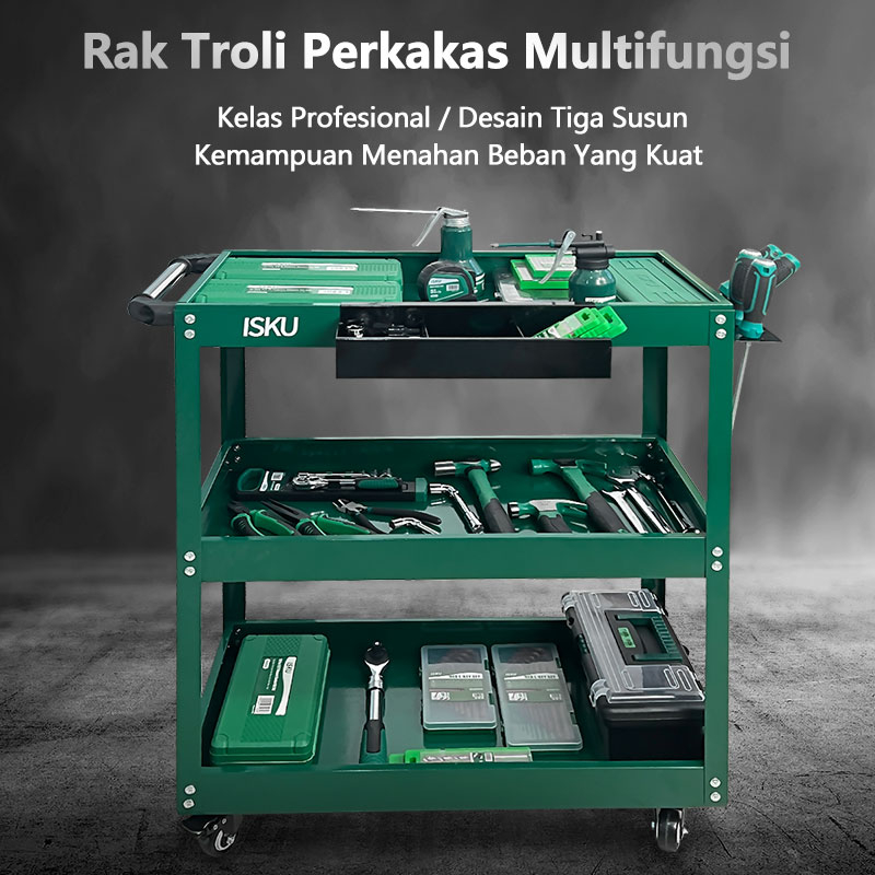 ISKU Trollies Bengkel Rak 3 Susun Trolly Trolley perkakas tools Tool Cart Rak /Alat Perkakas Trolly Galon/Trolley Alat K