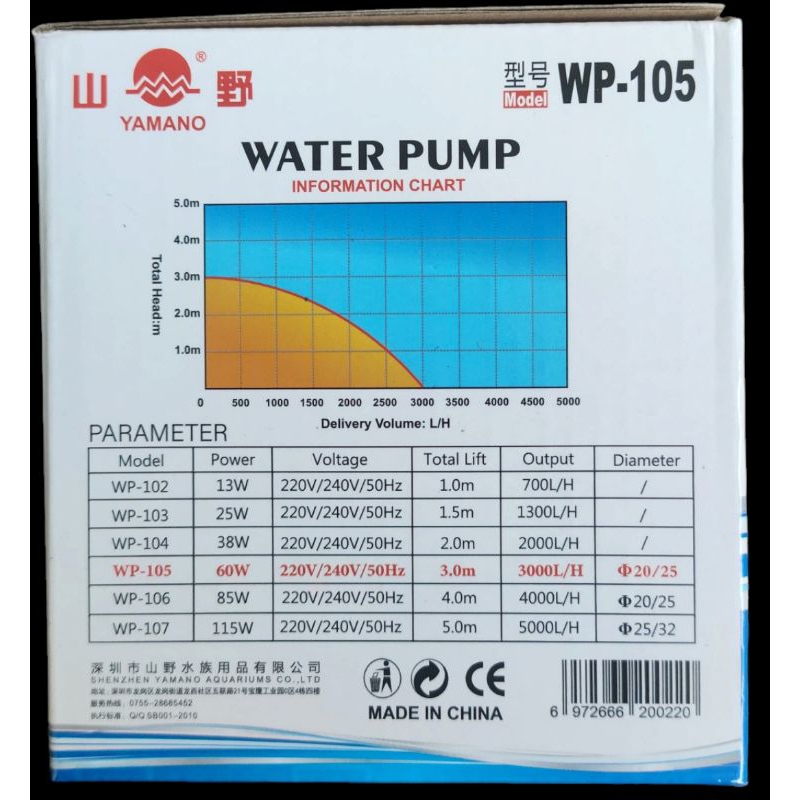 Mesin Pompa Aquarium Kolam Ikan Hias Hidroponik Yamano WP 105