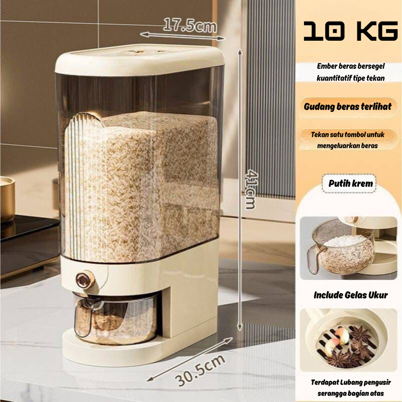 Alby Mart Dispenser Beras Mewah Estetik Kotak Tempat Wadah Penyimpanan Beras Rice 5Kg 10Kg