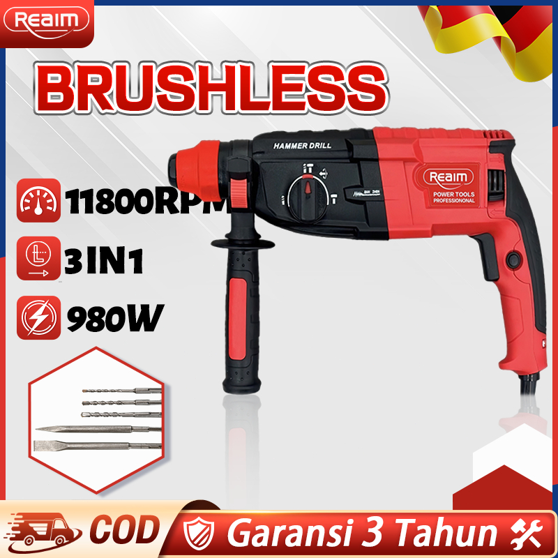 REAIM Impact Hammer Drill 26MM Palu 3In1 Mesin Bobok Tembok Beton 980W Mesin Bobok Profesional