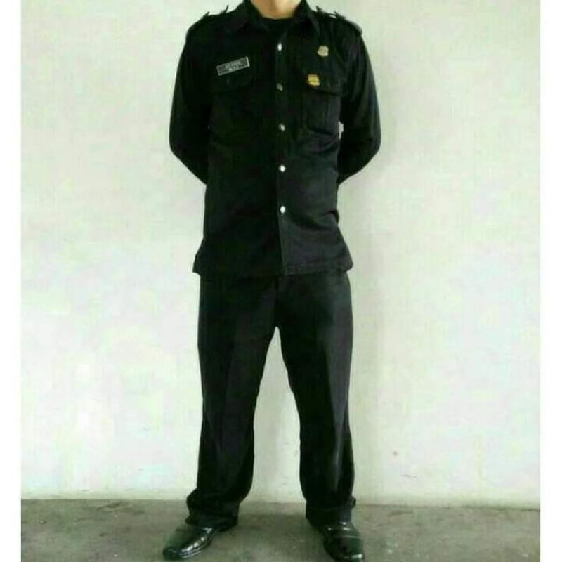 Stelan Seragam Safari Hitam Pekat Satpam Lengan Pendek | Baju Dinas Security / Satpam