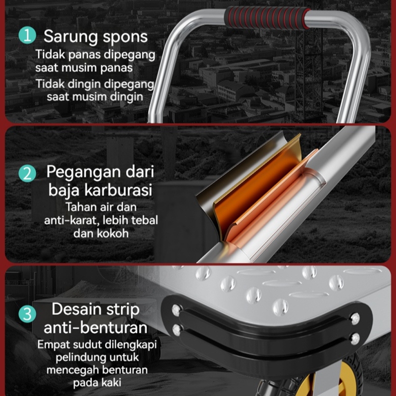 Reaim Troli Flatbed Trolley Troli Barang Lipat 500KG Kuat Dan Kokoh Troli Galon Folding Cart