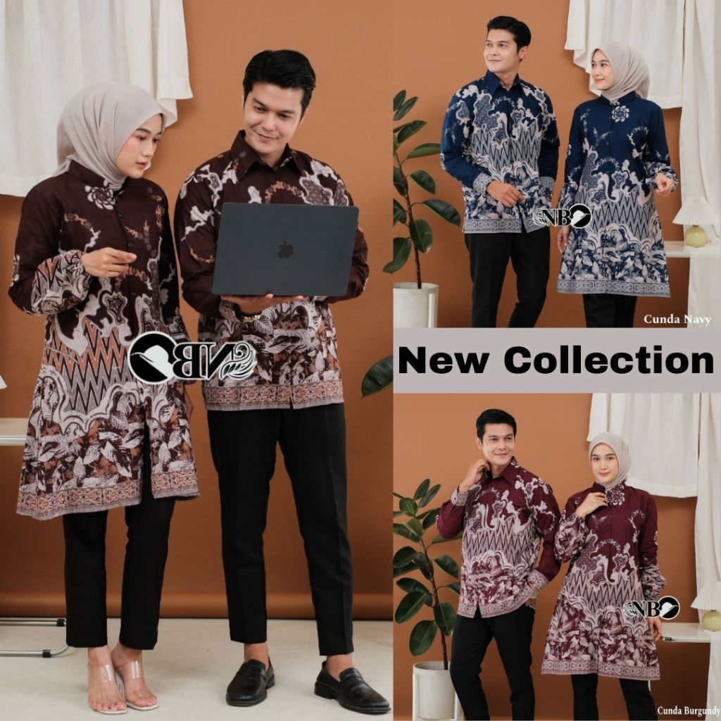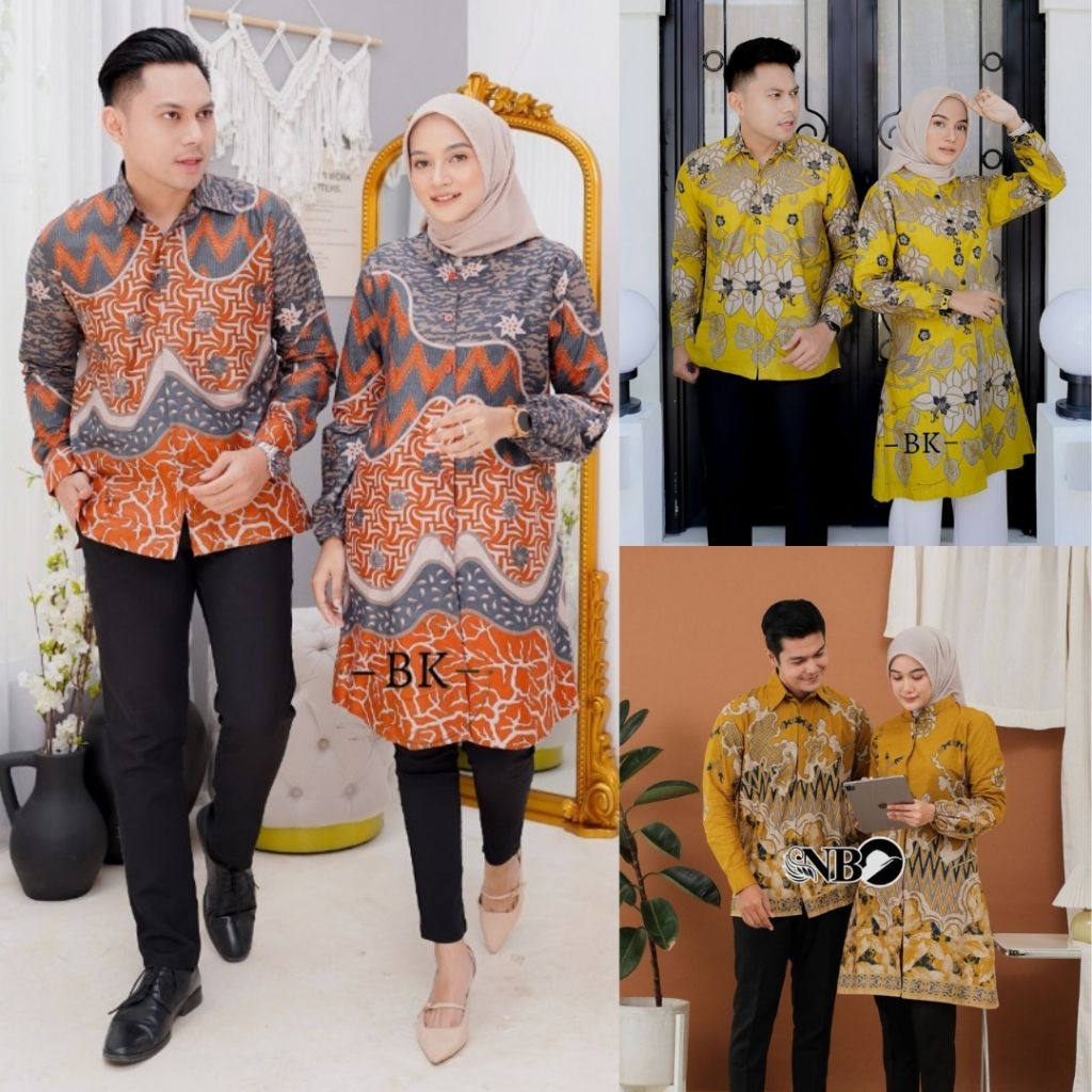 Batik Couple (GMBATIK) - Baju Batik Couple Modern Tunik Kancing Depan Kemeja Batik Lengan Panjang