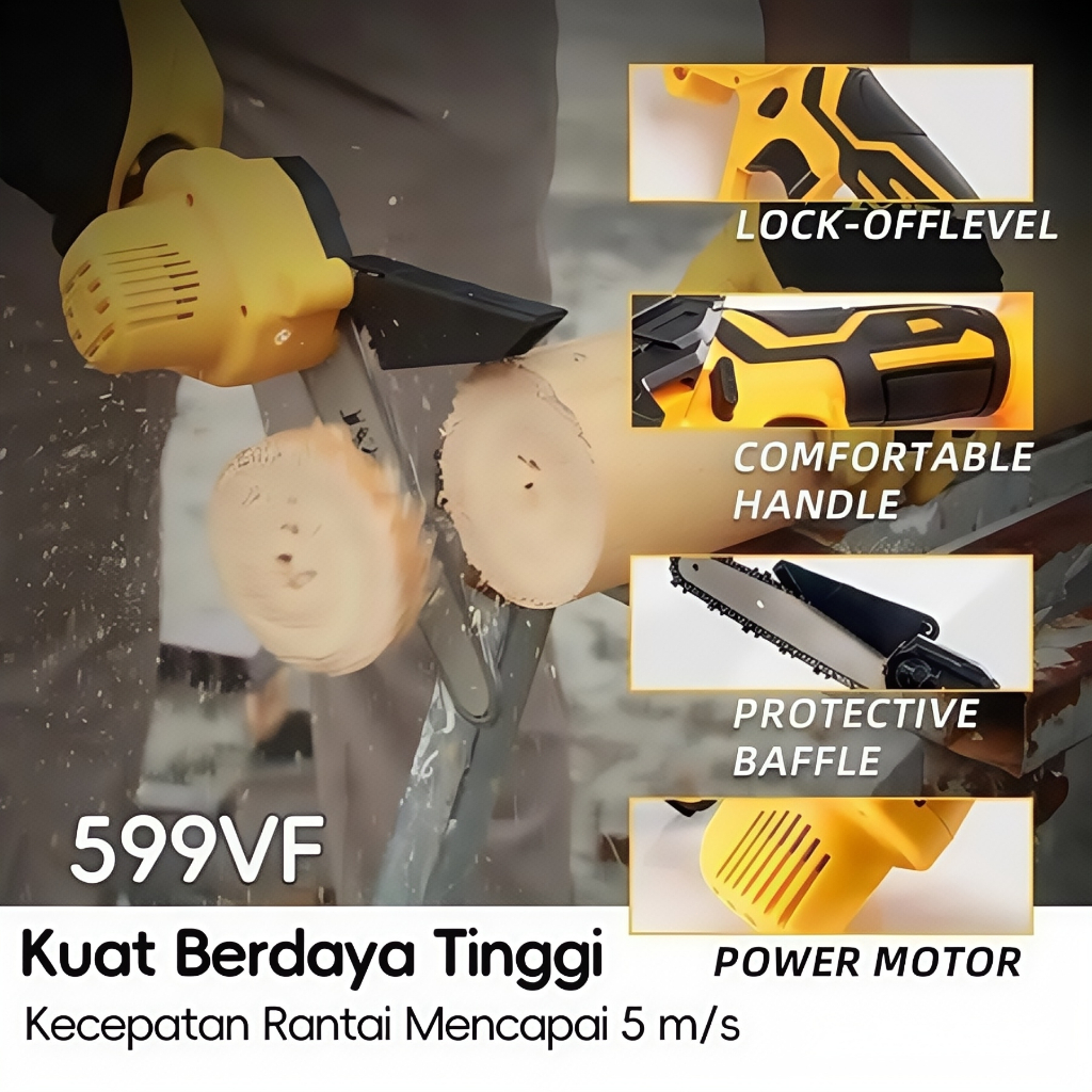 D-WE Chainsaw 6 inch Cordless Mini Chainsaw Brushless Branch Saw Wood Pruning Cutter Gergaji Elektrik Mesin P0T0NG Pokok