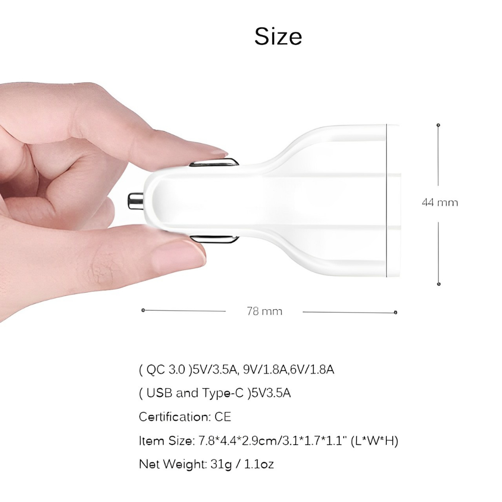 Car Quick Charger Mobil Fast Charging 7A 35 W Type-C 3 Port