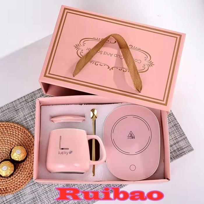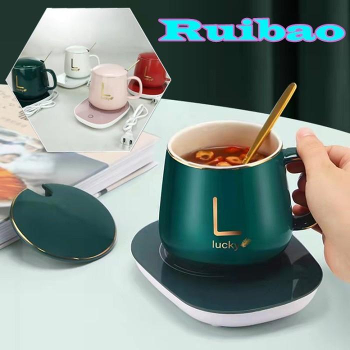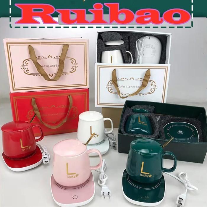 Ruibao Mug Cangkir Elektrik Set Keramik Pemanas 55 Derajat Penghangat Kopi - Random