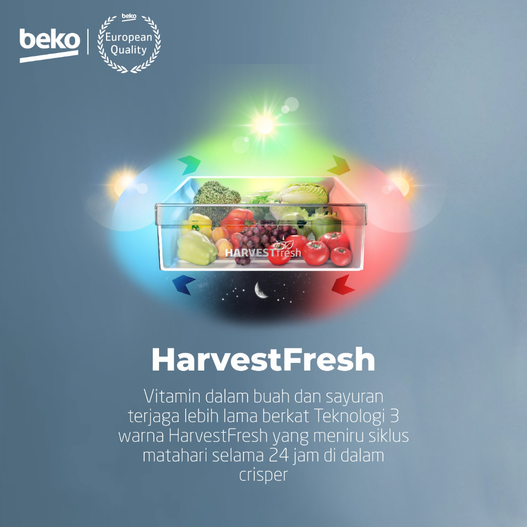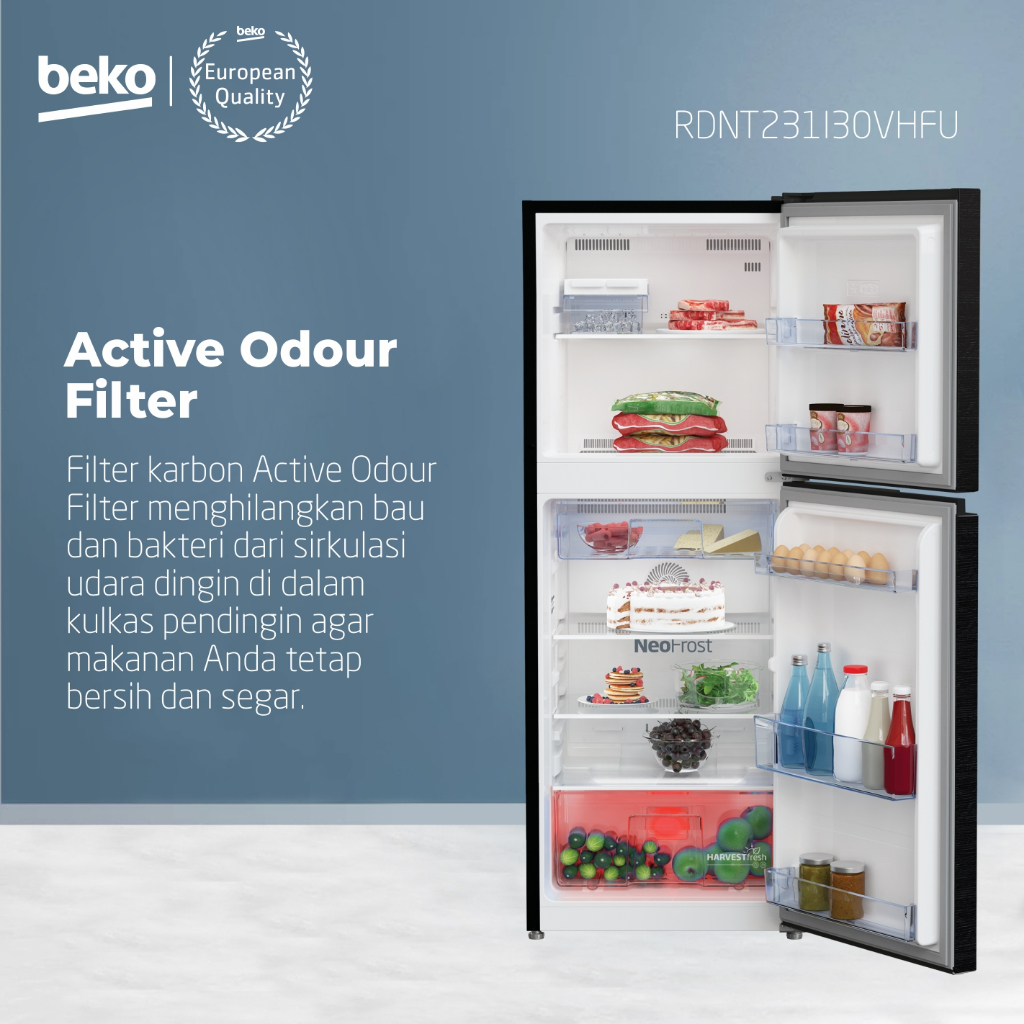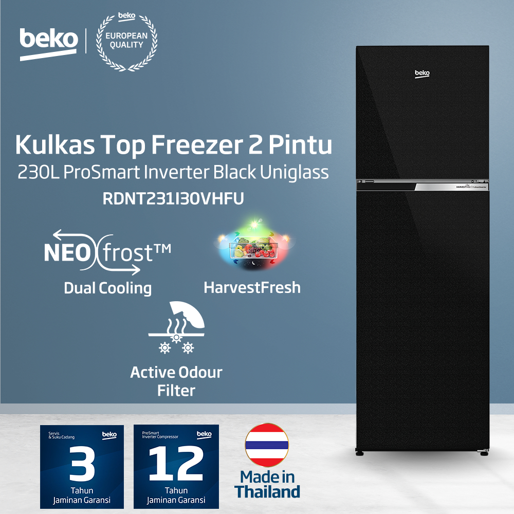 BEKO KULKAS 2 PINTU RDNT231I30VHFU KAPASITAS BESAR 230 LITER LEMARI ES HARVEST FRESH LOW WATT MESIN INVENTER TANPA DP