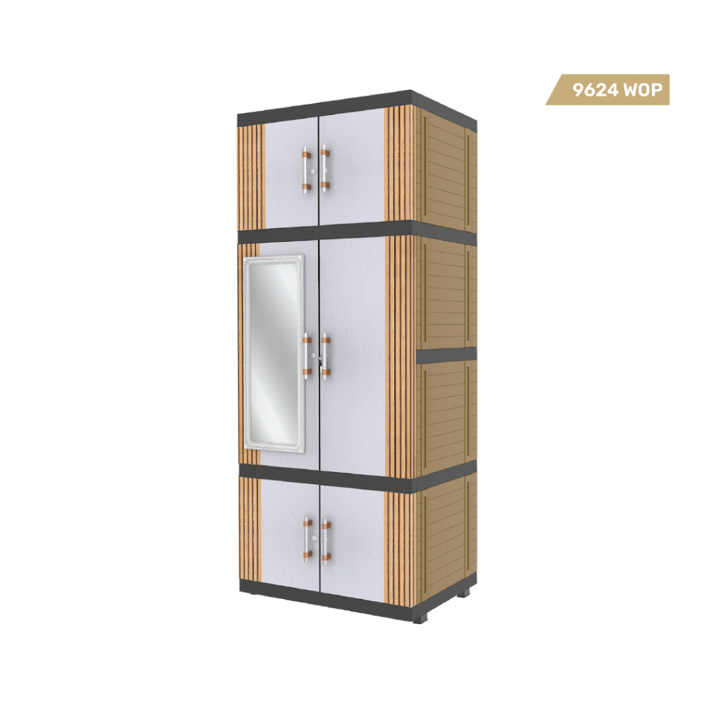 NAIBA 9624 SAC/ECE/WOP – Lemari Plastik Full Rak Hambalan 4 Susun dengan Kunci (Dengan Cermin)