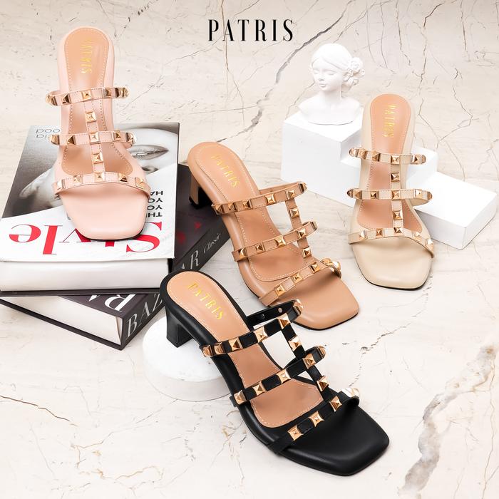 PATRIS Amanda Sandal Wanita Heels / Hak 7 Cm Black Sendal Sepatu Heels Wanita
