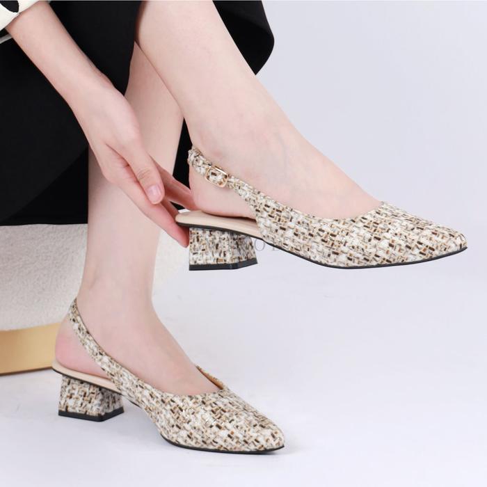 WINOD Given Heels 3cm Sepatu Kantor Wanita Model Tweed Hak Tinggi Daily Sepatu Heels Wanita