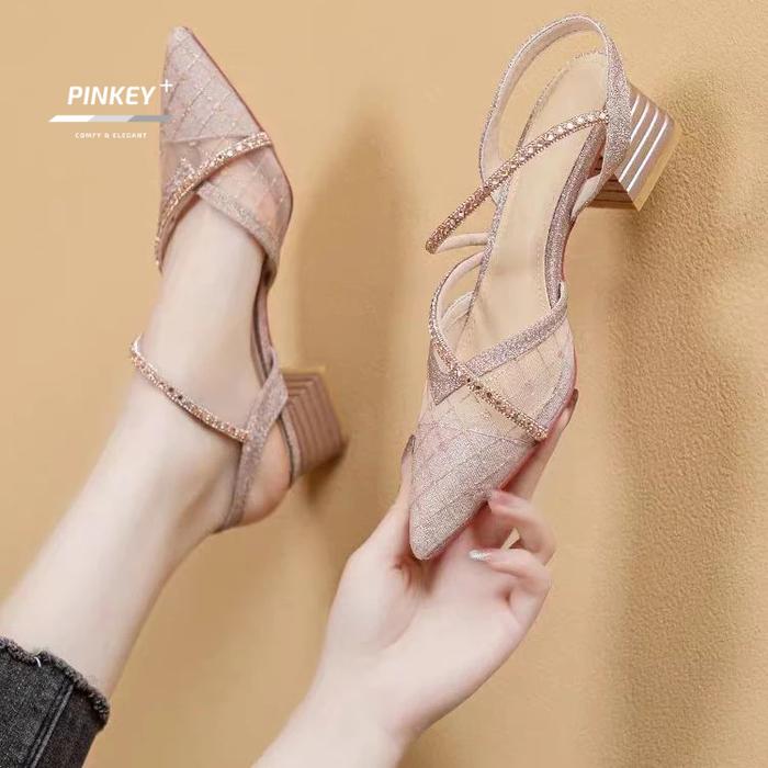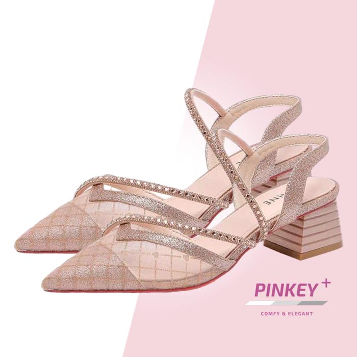 PINKEY P328 Sepatu Heels Low Heel Wanita Pointed Toe Pump Stiletto Hak Chunky Sandal Sendal heels