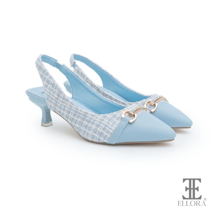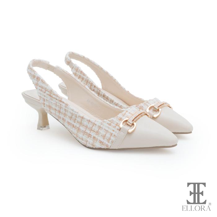 ELLORA EG-6515 Sepatu Heels Wanita Slingback Import 6.5cm Bahan Tweed Sepatu Heels Wanita