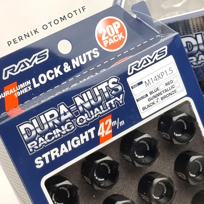 Rays Dura Nuts M14 x 1.5 Lock & Nut Black Duralumin L42 Baut Mur Roda Racing Lugnut Original Japan