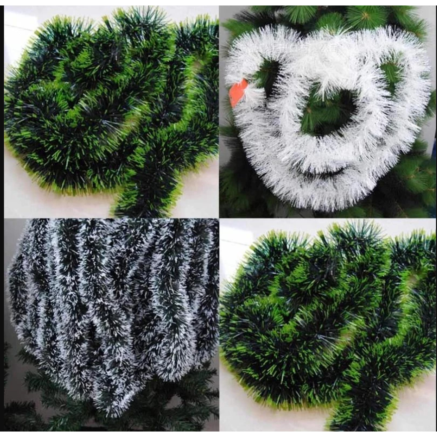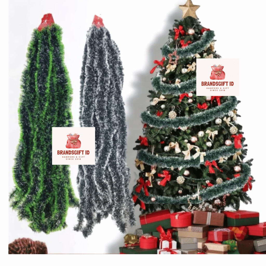 JUMBO Dekorasi Slinger Natal 2 METER kualitas bagus / Hiasan Slinger Tinsel Pohon Natal Putih Hijau Salju