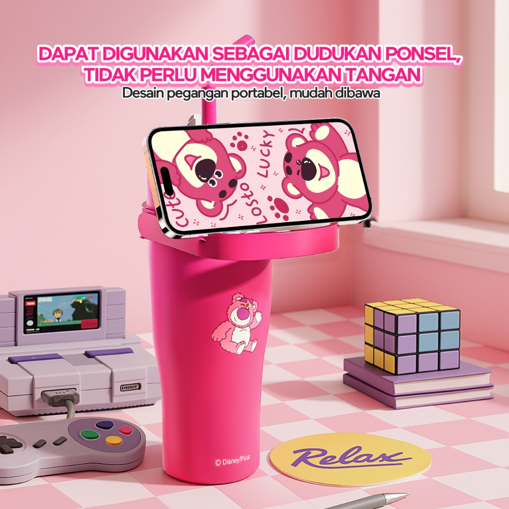 Tumbler Stainless Pink Disney Lotso Botol Minum Anak Portable 530ml/550ml/580ml/900ml/1200ml Tahan Dingin Panas 24Jam