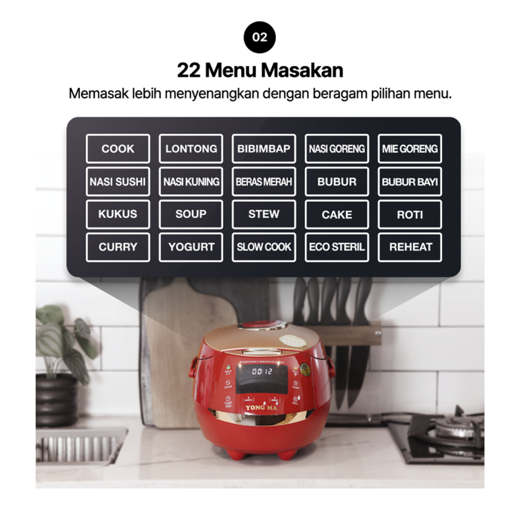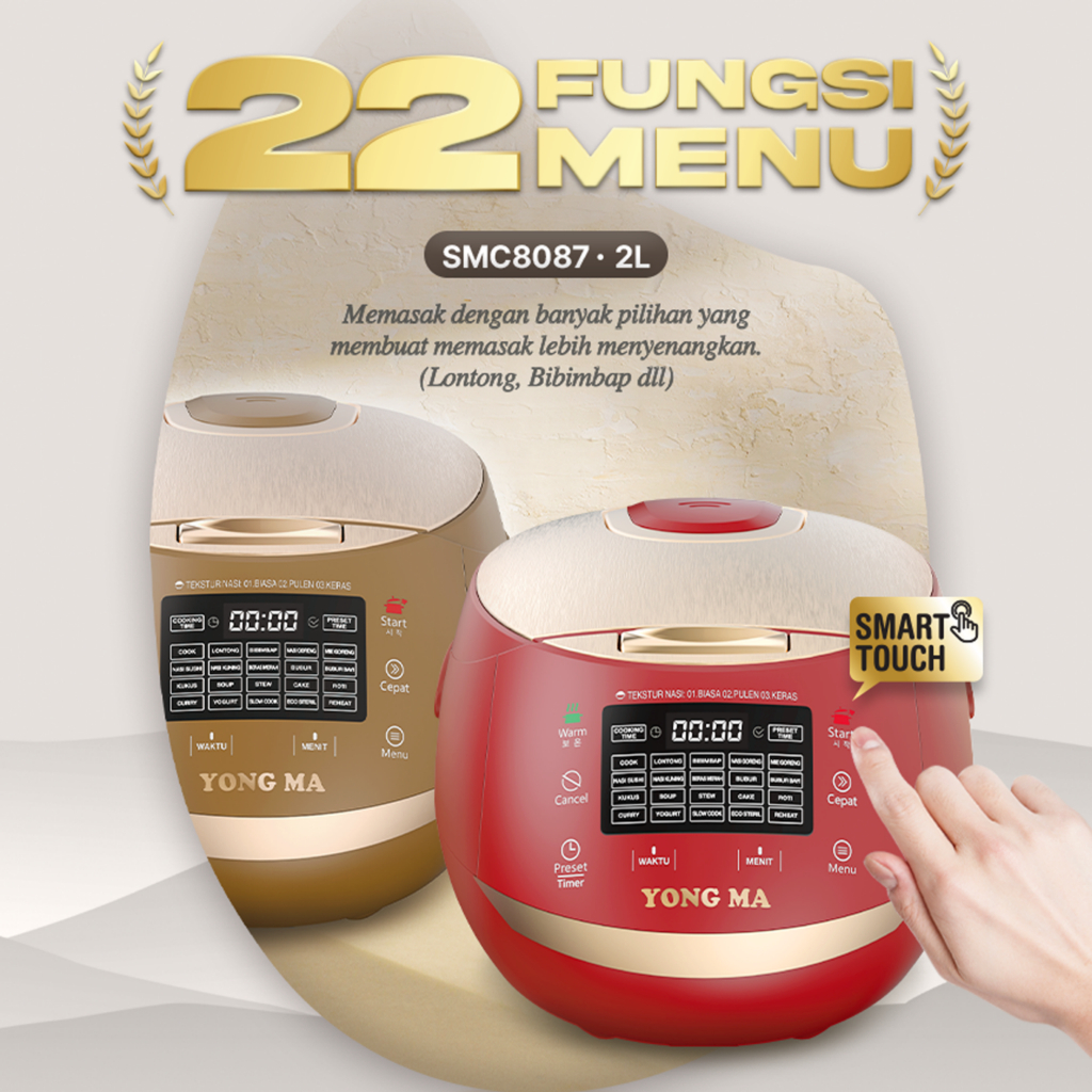 MAGICOM YONG MA SMC-8087 RICE COOKER DIGITAL 2 LITER 22 MENU INNERPOT GOLD CERAMIC WARNA MERAH MAGIC COM YONGMA TERBARU