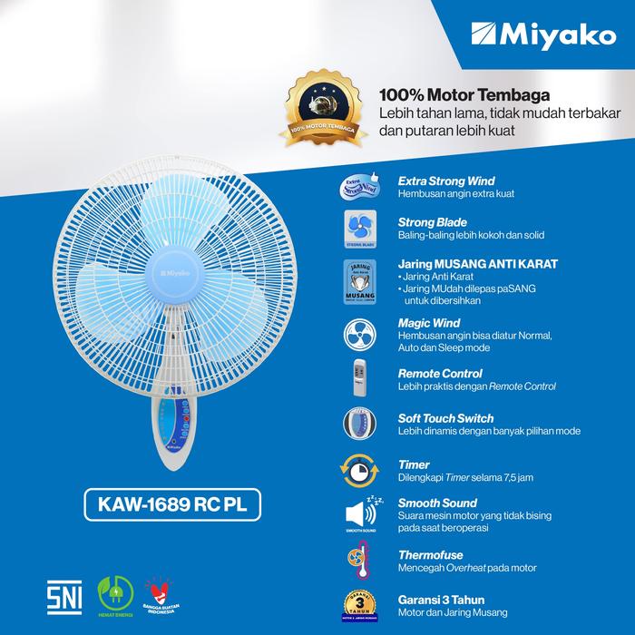 [PROMO] MIYAKO KIPAS ANGIN DINDING REMOTE 16 INCH KAW1689RC