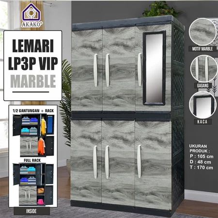 AKAKO - Lemari Pakaian Plastik 3 Pintu Jumbo Motif VIP LP3P + KACA / TANPA KACA