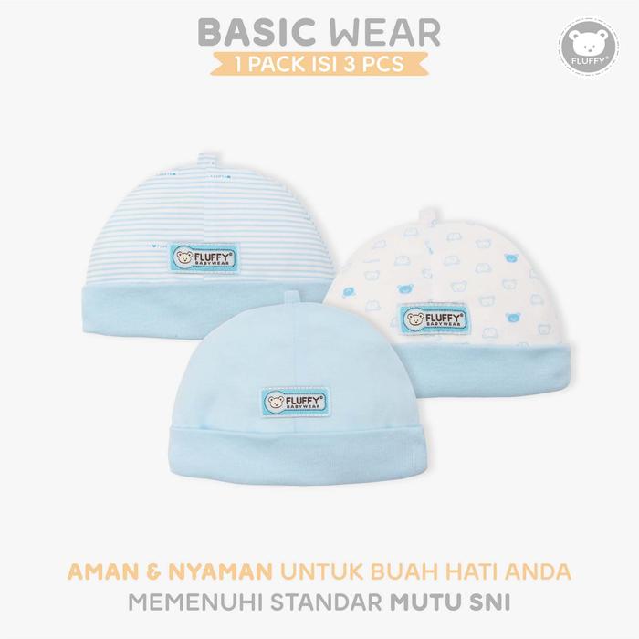 FLUFFY Topi Emen Bayi Biru (Isi 3 Pcs) TPE BRU NB
