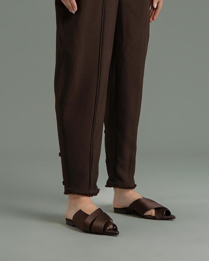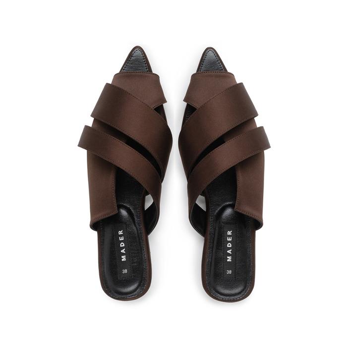 Sepatu Kulit Wanita Mader - Open Toe Mules Satin - Dark Brown