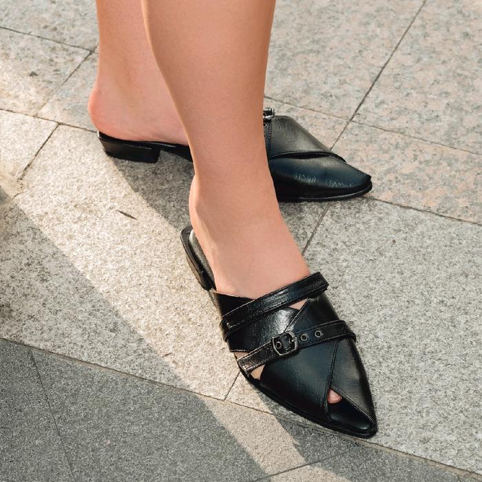 Sepatu Kulit Wanita CEKHAS - Emilia Black Mules Wanita URBAN GRACE