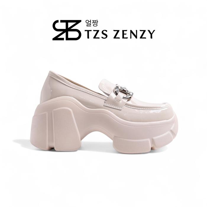 Sepatu Kulit Wanita TZS Zenzy Helshy Platform Korea Designed - Sepatu Wedges Wanita Comfy - Loafers
