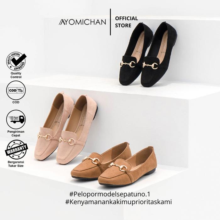 Sepatu Kulit Wanita Ayomichan - Helena AYM600 Sepatu Wanita Flatshoes Black Flat Shoes Kerja