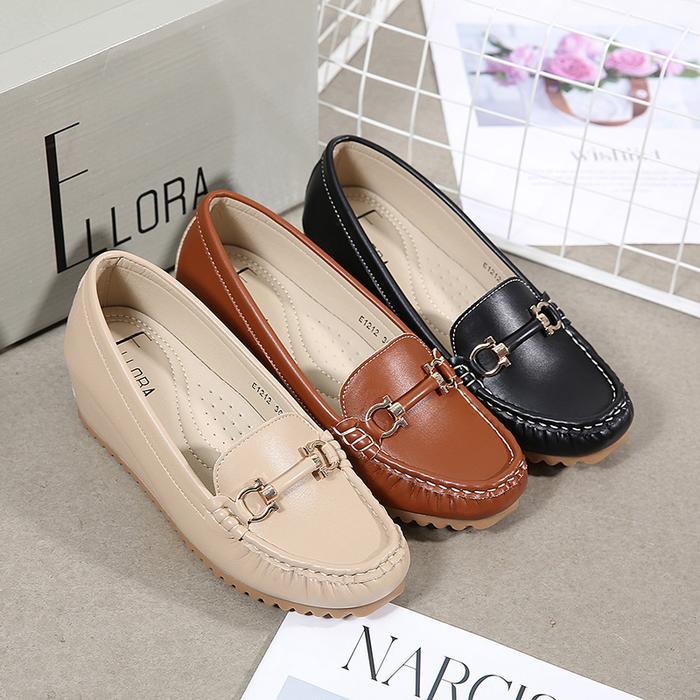 Sepatu Kulit Wanita ELLORA E1212 Sepatu Kerja Wanita Wedges Import Premium Shoes Kasual Slip