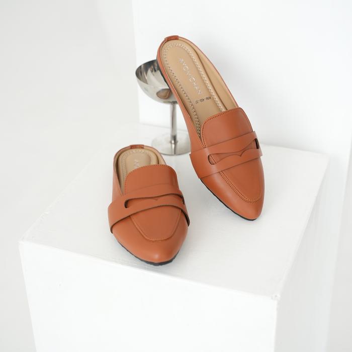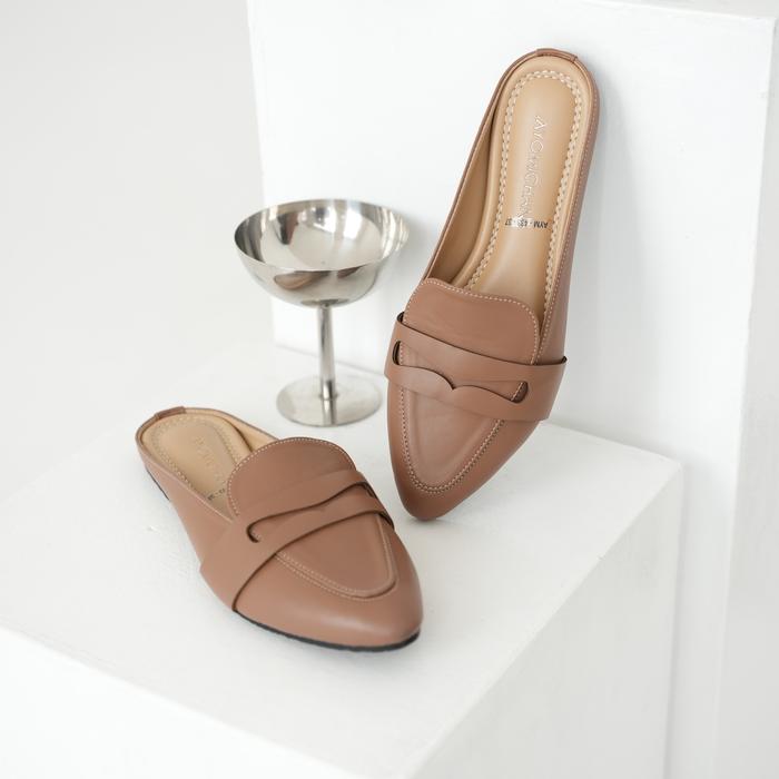 Sepatu Kulit Wanita Ayomichan - Leona AYM433 Mules Sepatu Wanita / Sepatu Flat Black Shoes