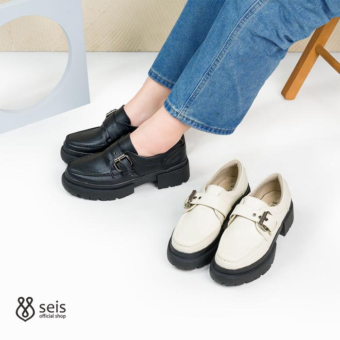 Sepatu Kulit Wanita SEIS Trixie Sepatu Docmart Wanita / Loafers Wanita Shoes Black