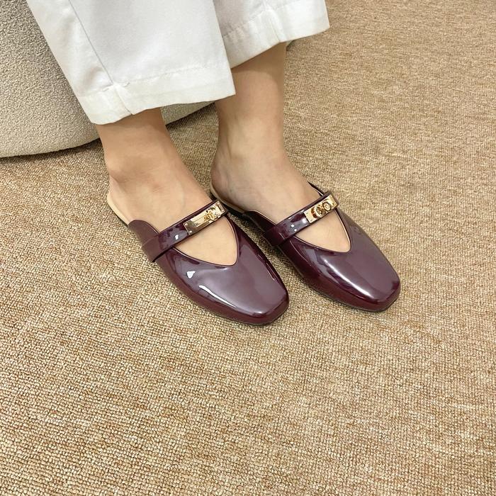 Sepatu Kulit Wanita Ayomichan - Safiya Aym640 Mules Sepatu Wanita / Sepatu Flat Black Shoes